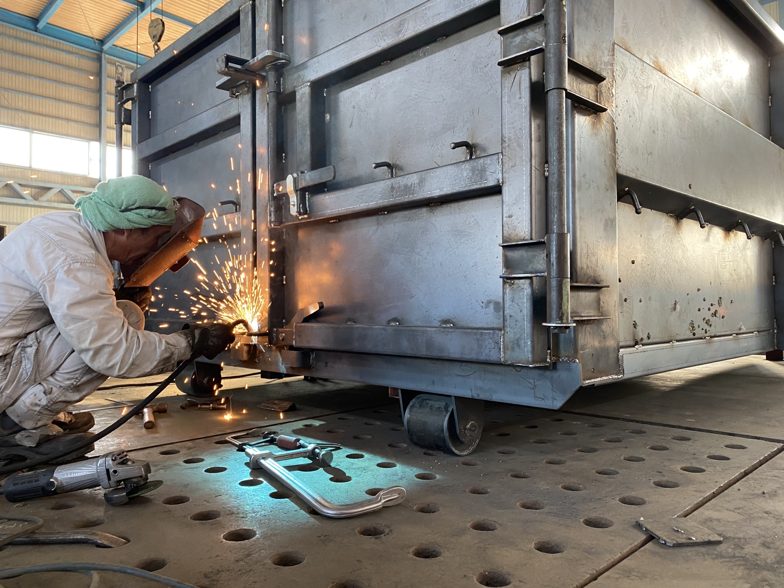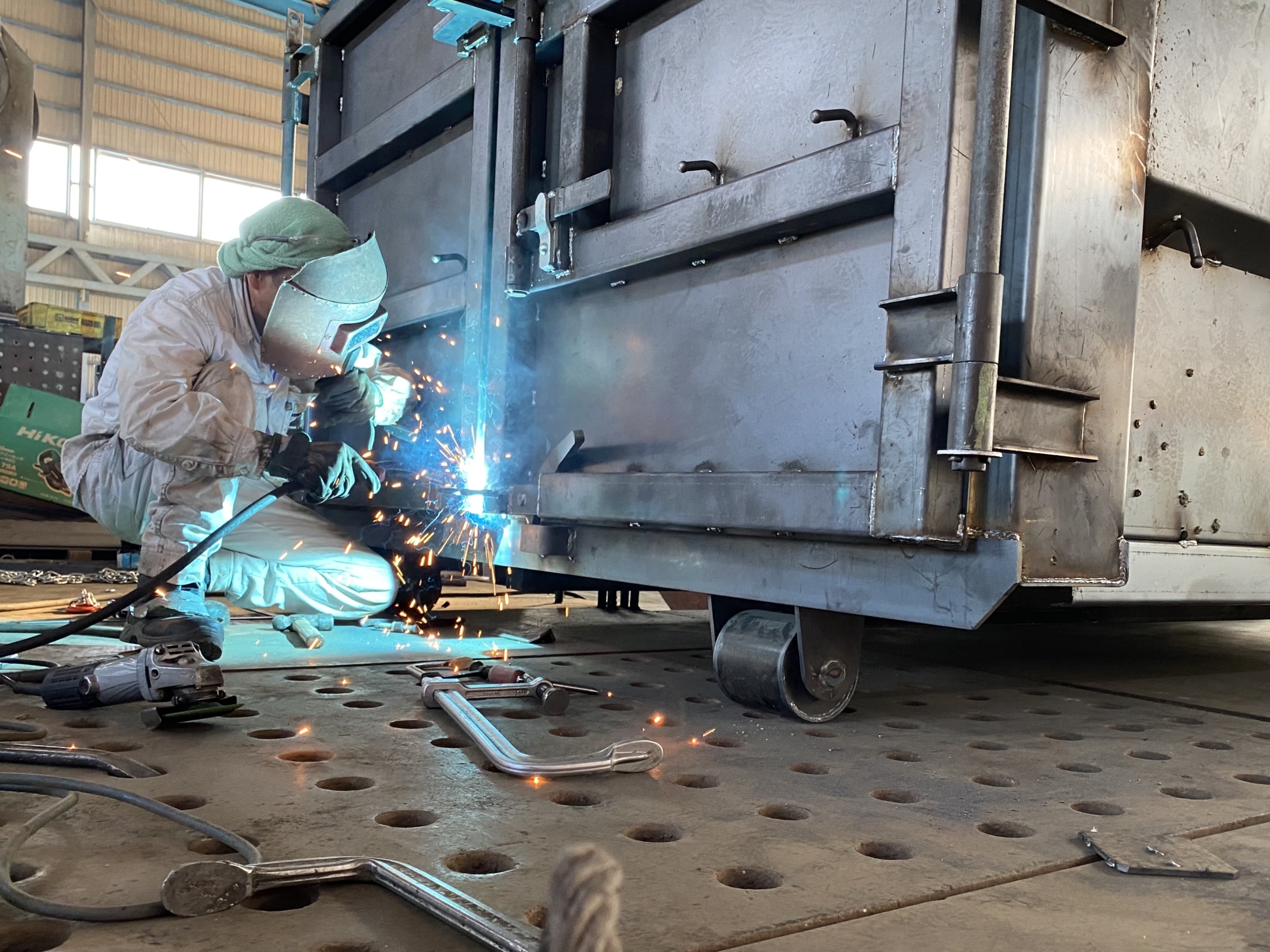 コンテナ製造・修理に関わり40年以上。職人の手作業による熟練技術が、穴の空いたコンテナさえも再生させます。